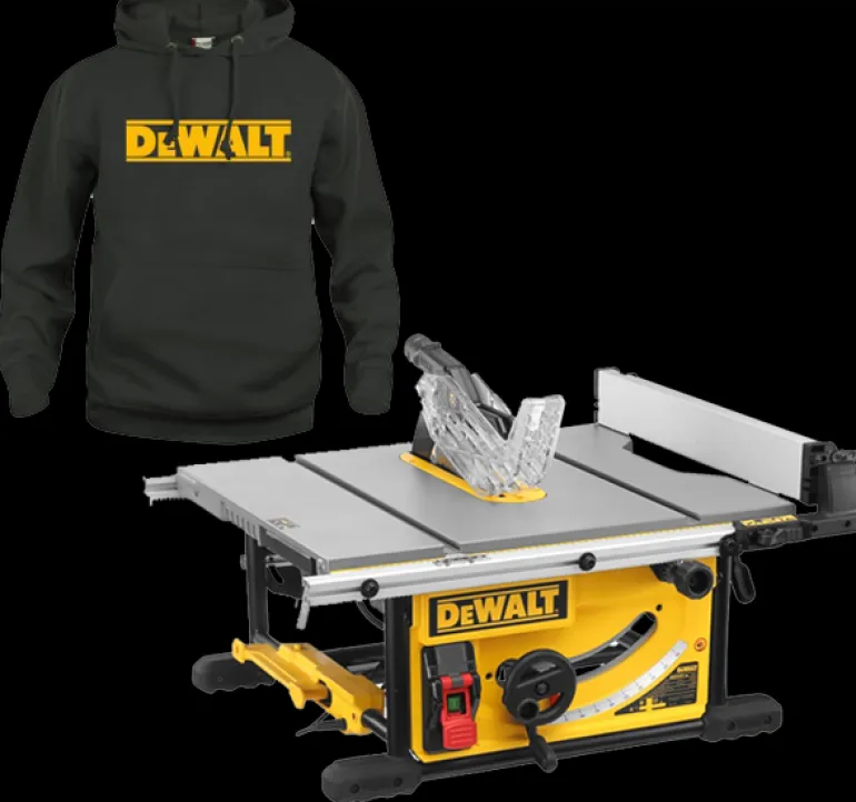 Tehokas pöytäsaha, vahvalla 2000 W moottorilla ja 250 mm:n terällä. Toimitetaan XL-kokoisen Dewalt-hupparin kanssa.