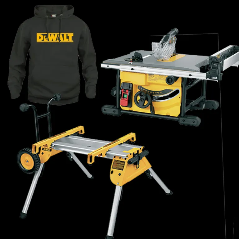 Pöytäpyörösaha tehokkaalla 1850W moottorilla, joka tuottaa korkean suorituskyvyn kaikilla käyttötiloilla. Toimitetaan L-kokoisen Dewalt-hupparin kanssa.