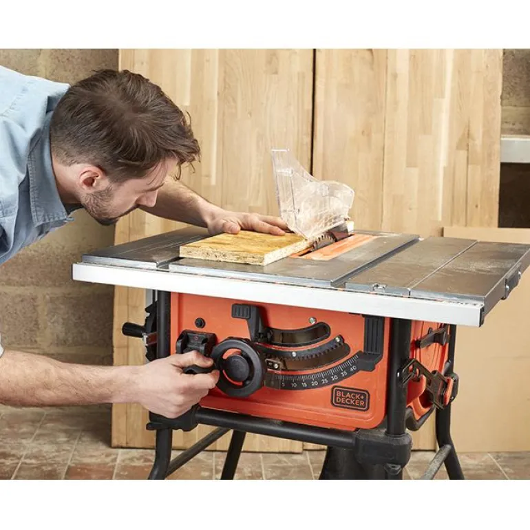 Black & Decker BES720-QS on tehokas 1800W pöytäsaha, jonka terän halkaisija on 254 mm, leikkuusyvyys 85 mm ja nopeus 4800 kierr./min. Tarkoille, suorille ja siisteille leikkauksille 305 mm asti. BES720-QS sopii täydellisesti suurten puukappaleiden, lattialautojen tai portaiden halkaisemiseen ja leikkaamiseen.