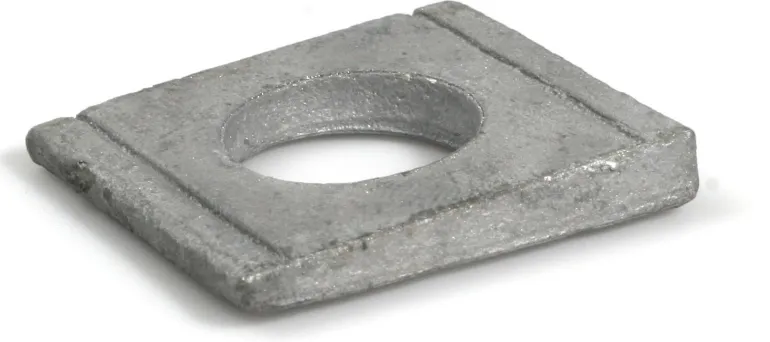 Profiilitangon aluslevy (palkkialuslevy), DIN 434 8% U-palkeille. DIN 435 14% l-palkeille. Teräs 100-250 HV, kuumasinkitty.