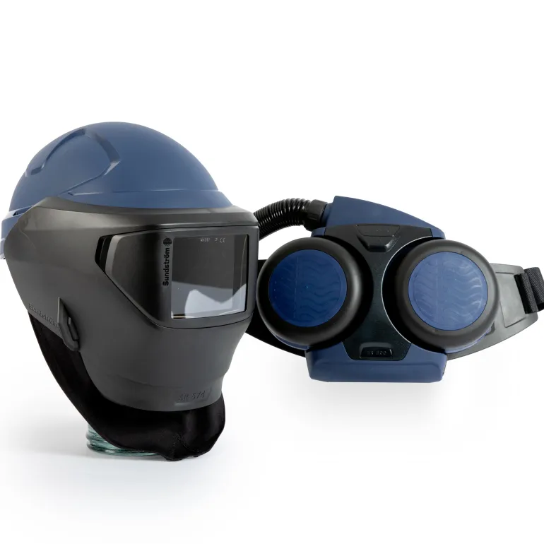 Sundström puhallinpaketti SR 500/SR 575/SR 574, tuotenumero H06-9210. Sarja sisältää SR 500 -puhaltimen, SR 575 -suojakypärän, SR 574 -hitsausvisiirin ja muita lisätarvikkeita. Sisältää SR 500 -puhaltimen, SR 575 -suojakypärän visiireineen, SR 574 -hitsauskasetin, passiivisen hitsaussuodattimen tummuudella 10, STD-akun, akkulaturin, SR 503 -nahkahihnan, 2 kpl SR 510 P3 R -hiukkassuodattimia, 2 kpl suodattimen liitoskappaleita, 10 kpl SR 221 -esisuodattimia, 2 kpl SR 336 -kipinänsammuttimia, 2 kpl esisuodattimen pidikkeitä, virtausmittarin, pistokesarjan, puhdistusliinan ja käyttöohjeet.