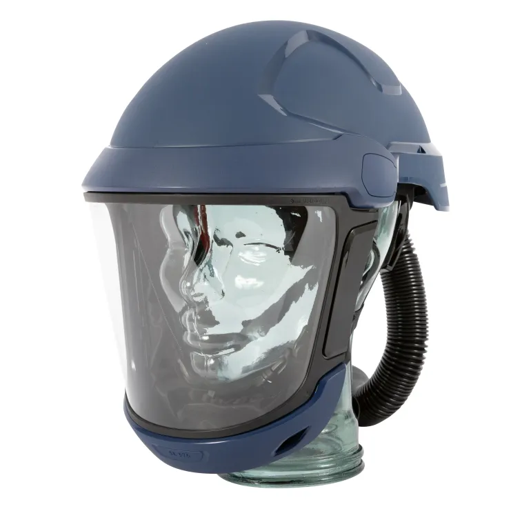 Sundström SR 575 -suojakypärä visiirillä (H06-9010). SR 575 yhdessä akkukäyttöisen SR 500-, SR 500 EX- tai SR 700 -puhaltimen ja hyväksyttyjen suodattimien kanssa sisältyvät Sundströmin puhallinavusteisiin hengityssuojainlaitejärjestelmiin. Visiirillisen kypärän hengitysletku on kiinnitettävä suodattimilla varustettuun puhaltimeen.