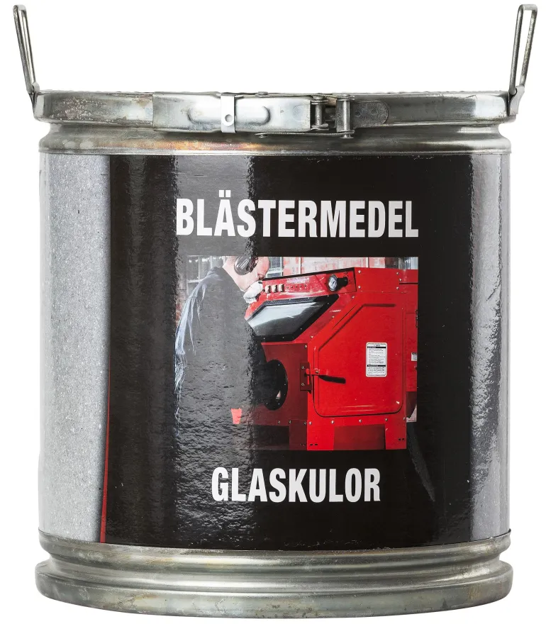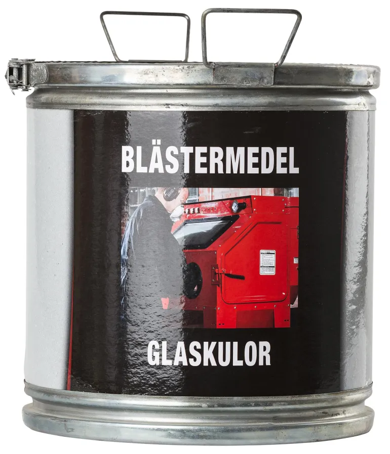 Pakkaus, joka sisältää 21 kg puhallusainetta jonka karkeus 0,25-0,50 mm. Lasi on hyvin pienistä lasihelmistä koostuva puhallusaine.