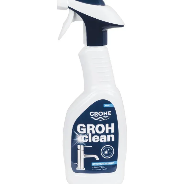 GROHclean on kylpyhuoneen puhdistusaine. Se on suunniteltu sekoittajille, ja se poistaa tehokkaasti lian, rasvan, kalkin ja saippuajäämät. Puhdistusaine on sitruunahappopohjainen, ja se on saatavissa 500 ml:n suihkepullossa.