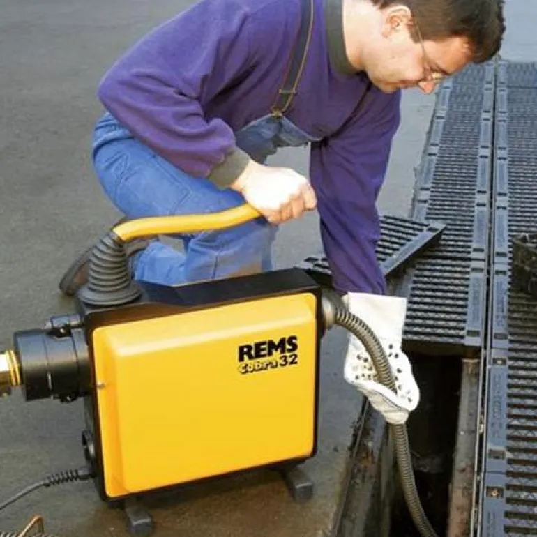 REMS Cobra 22 Set on sähköinen putkenpuhdistuskone putkille Ø 20 – 150 mm. Koneessa on huoltovapaa hammashihnakäyttö, kondensaattorimoottori 230 V, 50 Hz, 750 W, suunnanvaihto, suojaletku.
