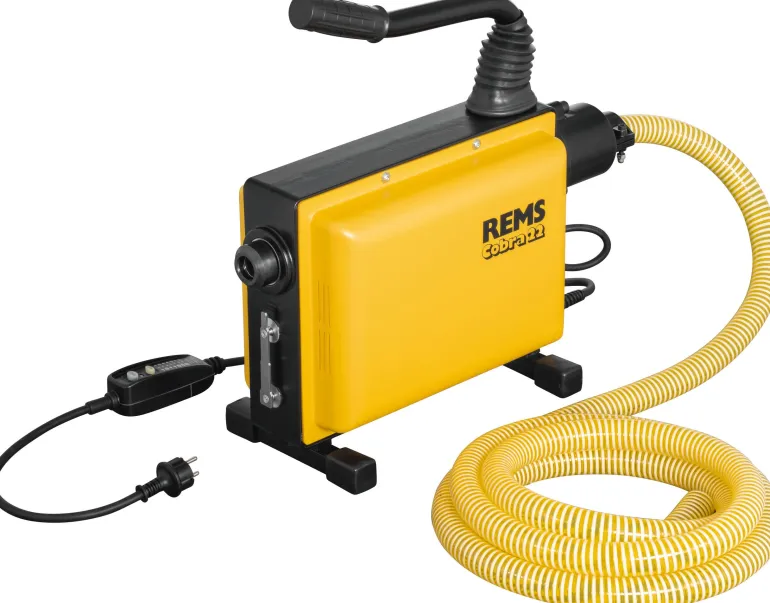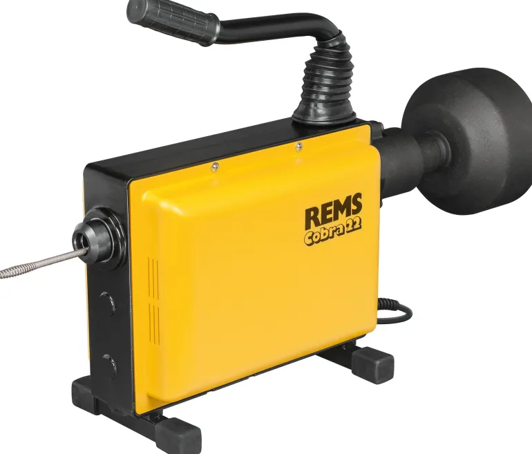 REMS Cobra 22 -kone, jossa on suojaletku. Koneessa huoltovapaa hammas- hihnapyörä, kondensaattorimoottori 230 V, 50 Hz, 750 W, suunnanvaihto, suojaletku ja henkilösuojakytkin (PRCD). REMS Cobrassa on nopea pyöritysjärjestelmä, jossa on osista koostuva puhdistuskaapeli ja jopa 100 metrin työskentelypituus. Tehokas ketjulinkous ja jyrsintä jopa 740 min-1. Suljettu käyttöakseli suojaa moottoria ja voimansiirtoa lialta ja vedeltä.