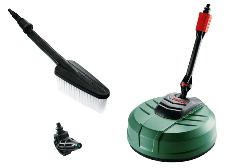 Bosch DIY F016800611 Home and Car Kit sisältää kaikki tarvittavat varusteet pihamaan kätevään ja laadukkaaseen puhdistamiseen. Terassipesuri poistaa pihan, ajoteiden ja laatoitusten sammaleen ja lian helposti ja nopeasti. Pesuharja poistaa karkean lian tehokkaasti, mutta estää herkkien ikkuna- ja autopintojen vaurioitumisen pehmeiden harjasten ansiosta. 90°:n suihkusuutin puhdistaa hankalan lian räystäskouruista tai auton pyöräkoteloista uskomattoman vaivattomasti.