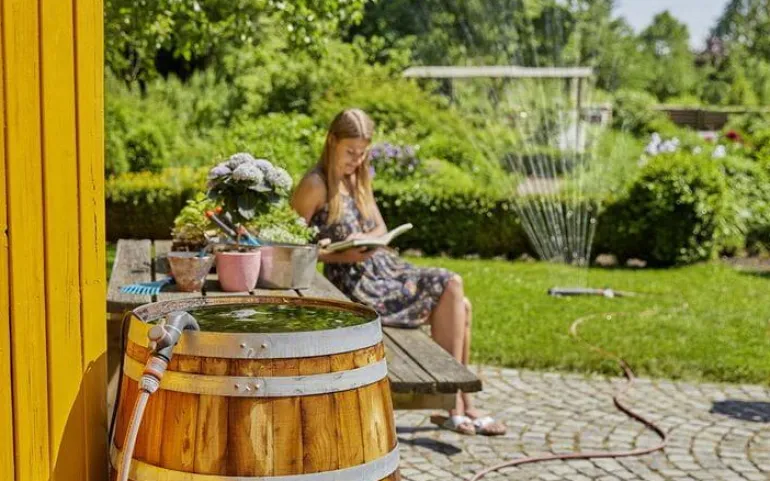 Pumpussa on automaattinen on/off-toiminto automaattista toimintaa ja kuivakäynnin estoa varten. Automaattitoiminto käynnistää ja sammuttaa pumpun automaattisesti silloin, kun vettä tarvitaan tai veden tarve loppuu. Voidaan käyttää myös kasteluohjaimen kanssa. Integroitu suodatin on helppo puhdistaa ja estää pumppua ja siihen liitettyjä laitteita likaantumiselta tai vaurioitumiselta. Kevyestä ja kestävästä alumiinista valmistettu patentoitu teleskooppiputki voidaan helposti ja nopeasti säätää juuri sopivalle korkeudelle sadevesisäiliöön nähden (760–960 mm). Sen avulla voit helposti johtaa veden tynnyrin reunan yli – ilman läikkymistä ja letkun taittumista. Mukana tulevan säätöventtiilin avulla voit muuttaa virtausmäärää tai sulkea veden virtauksen letkuun kokonaan.