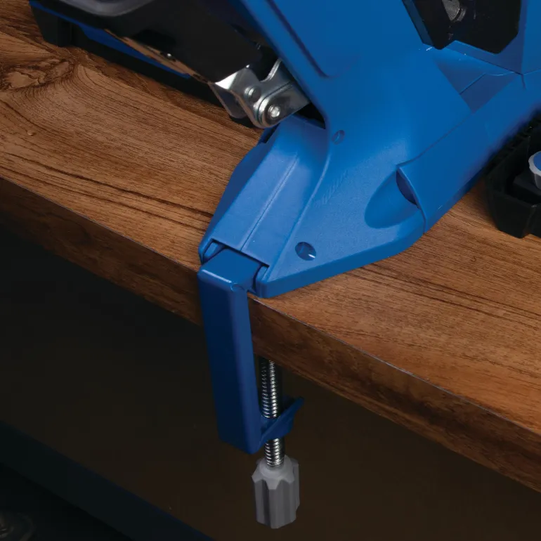 Käytä Pocket-Hole Jig Clamp-työkalua kiinnittääksesti 500- ja 700-sarjan Pocket-Hole Jigit työasemaasi. Se on myös yhteensopiva Pocket-Hole Jig 720- ja 720PRO-työkalujen kanssa, mikä lisää porausturvallisuutta.