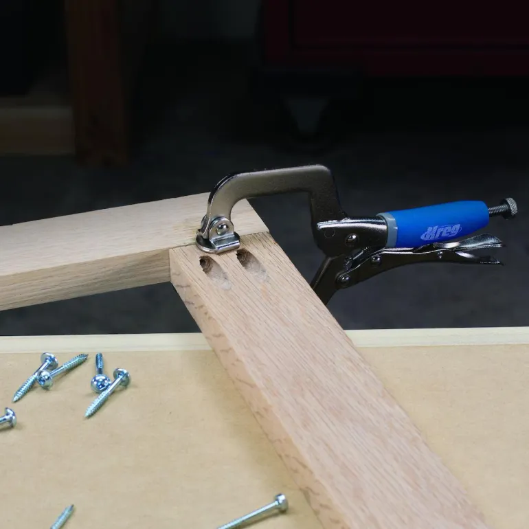 Kompakti puristin, joka soveltuu hyvin käytettäväksi ahtaissa tiloissa. Sen syvyys on 51 mm ja kiinnittää jopa 57 mm paksuja materiaaleja. Sopii työhön liitosmateriaalien kanssa. Puristin jakaa voiman tasaisesti ja pitää materiaalin tukevana asennuksen aikana. Kahvan ruuvilla voit säätää kiinnittimen materiaalin paksuuden mukaan.