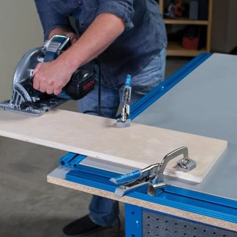 Kreg KKS2745 -puristinjärjestelmän (69 x 115 cm) avulla voit tehdä työpöydästä monipuolisen puristinjärjestelmän.
