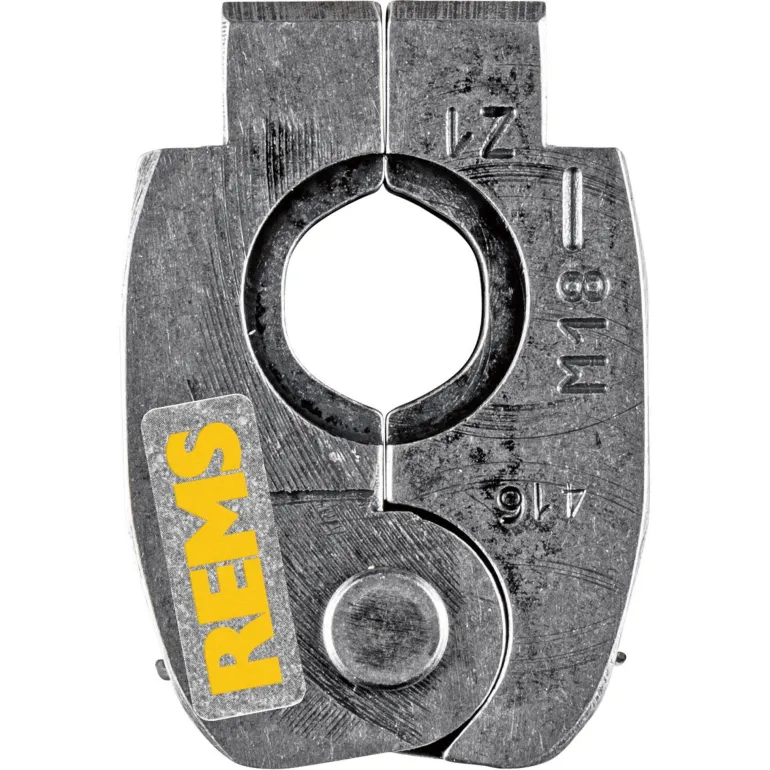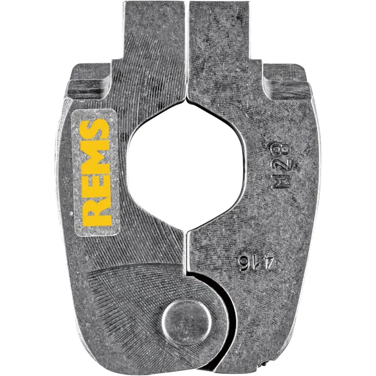 REMS PR-2B on puristusrengas, tyyppi M28, kallistus 45°, 2 puristusleukaa puristusleukojen turvallista sijoittamista varten vaikeasti tavoitettaviin kohteisiin 45°:n kallistuksen ansiosta. Tarvitaan välipihdit Z1/Z1 Mini.
