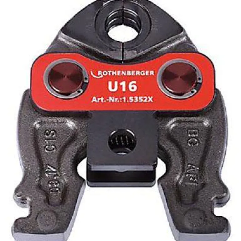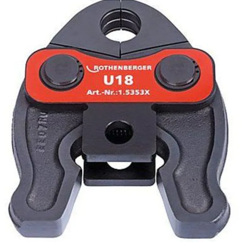 Rothenberger Compact -puristusleuka U-profiililla. DURA LAZR TEC -käsittely rasituspisteissä, mikä vähentää kulumista ja pidentää käyttöikää 100 %. Puristusleuka soveltuu järjestelmästä riippuen metallin ja muovin puristamiseen. Yhteensopiva kaikkien puristuskoneiden kanssa, joiden voima on 19 kN.