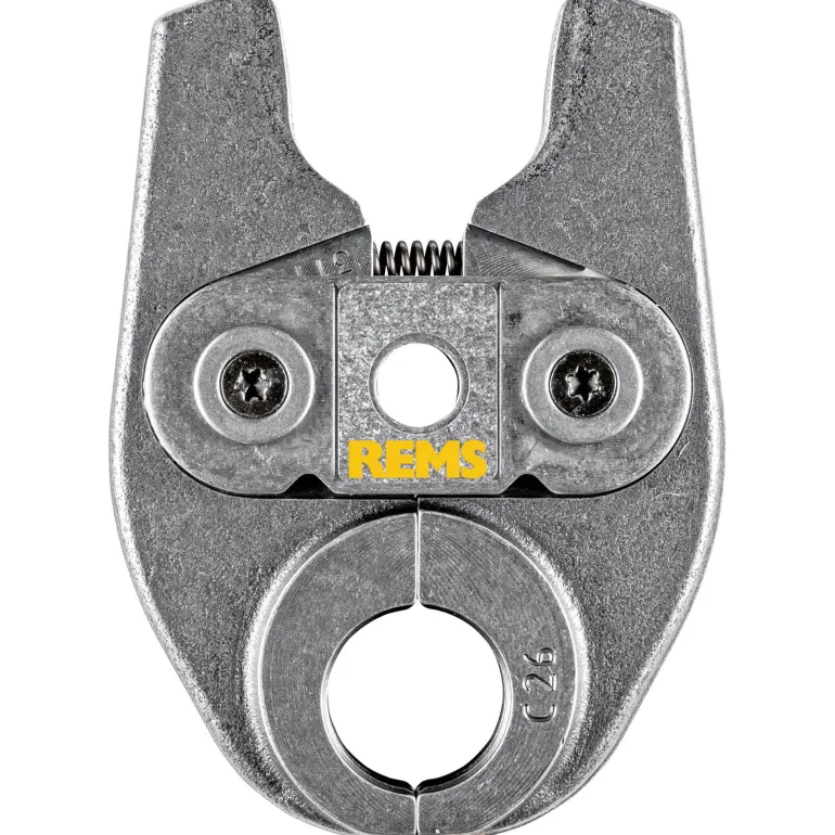REMS 578392 Mini on kääntyvä yksilohkoinen puristusleuka, C-kuvio, tyyppi C 26 (PZ-2B). Puristusleuassa on erittäin kestävä, kompakti ja kevyt rakenne erikoissuunnitellun puristuspihtiliitännän ansiosta. Käytetään koneilla REMS Mini-Press ACC ja REMS Mini-Press 22 V ACC. Puristuskuviot ovat järjestelmäkohtaisia ja vastaavat kyseisen puristusmuhvijärjestelmän puristuskuvioita. Tämä takaa moitteettoman yhteensopivuuden järjestelmän kanssa ja varman puristuksen. Puristusleuassa on erittäin tarkka ja mekaanisesti tarkka CNC-koneistettu pyöristetty puristuskuvio. Tällä tavoin valmistustoleranssit ovat huomattavasti pienempiä kuin vain valamalla valmistetuissa puristusleuoissa.