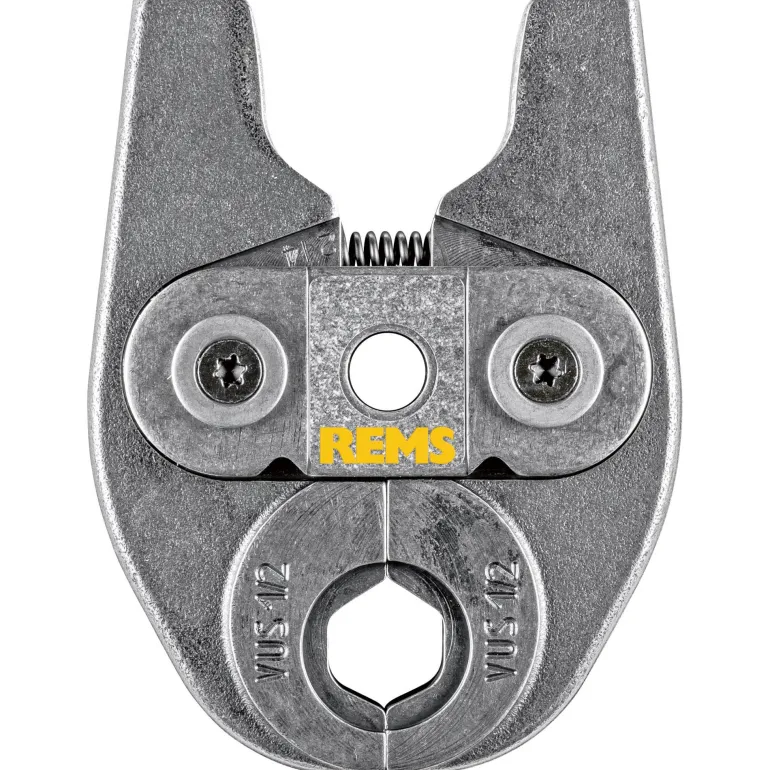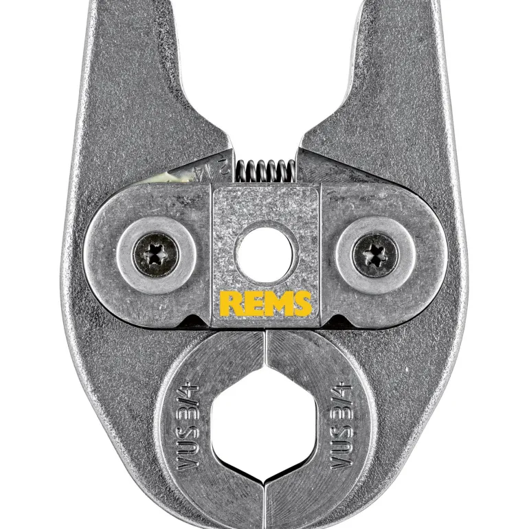 REMS 578570 Mini on kääntyvä yksilohkoinen puristusleuka, VUS-kuvio, tyyppi VUS 1 (PZ-2B). Puristusleuassa on erittäin kestävä, kompakti ja kevyt rakenne erikoissuunnitellun puristuspihtiliitännän ansiosta. Käytetään koneilla REMS Mini-Press ACC ja REMS Mini-Press 22 V ACC. Puristuskuviot ovat järjestelmäkohtaisia ja vastaavat kyseisen puristusmuhvijärjestelmän puristuskuvioita. Tämä takaa moitteettoman yhteensopivuuden järjestelmän kanssa ja varman puristuksen. Puristusleuassa on erittäin tarkka ja mekaanisesti tarkka CNC-koneistettu pyöristetty puristuskuvio. Tällä tavoin valmistustoleranssit ovat huomattavasti pienempiä kuin vain valamalla valmistetuissa puristusleuoissa.