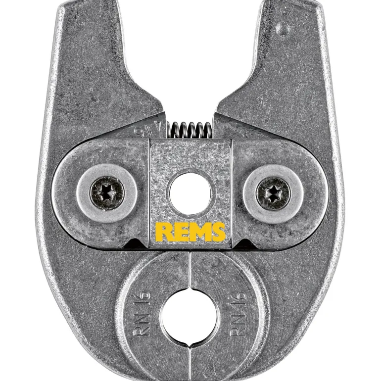 REMS 578454 Mini on kääntyvä yksilohkoinen puristusleuka, RN-kuvio, tyyppi RN 16 (PZ-2B). Puristusleuassa on erittäin kestävä, kompakti ja kevyt rakenne erikoissuunnitellun puristuspihtiliitännän ansiosta. Käytetään koneilla REMS Mini-Press ACC ja REMS Mini-Press 22 V ACC. Puristuskuviot ovat järjestelmäkohtaisia ja vastaavat kyseisen puristusmuhvijärjestelmän puristuskuvioita. Tämä takaa moitteettoman yhteensopivuuden järjestelmän kanssa ja varman puristuksen. Puristusleuassa on erittäin tarkka ja mekaanisesti tarkka CNC-koneistettu pyöristetty puristuskuvio. Tällä tavoin valmistustoleranssit ovat huomattavasti pienempiä kuin vain valamalla valmistetuissa puristusleuoissa.