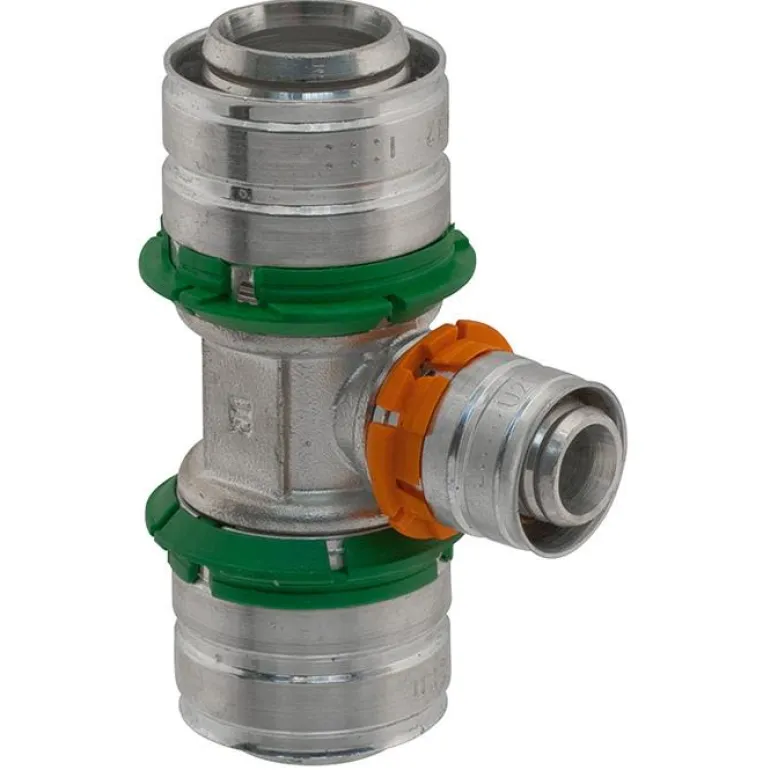 Puristusliitin on valmistettu sinkkikadon kestävästä messingistä ja siinä on alumiininen puristusholkki. Varustettu puristusohjaimella, puristusilmaisimella ja liitinkoon värimerkinnällä. Liitäntäkoot 32 x 20 x 32 mm.