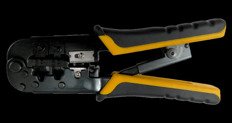 Puristuspihdit RJ11-, RJ12- ja RJ45-liittimien puristamiseen. Palautuslukko, joka vapautuu automaattisesti, kun täydellinen puristus on suoritettu. Toiminnot kaapelien katkaisuun ja kuorintaan.