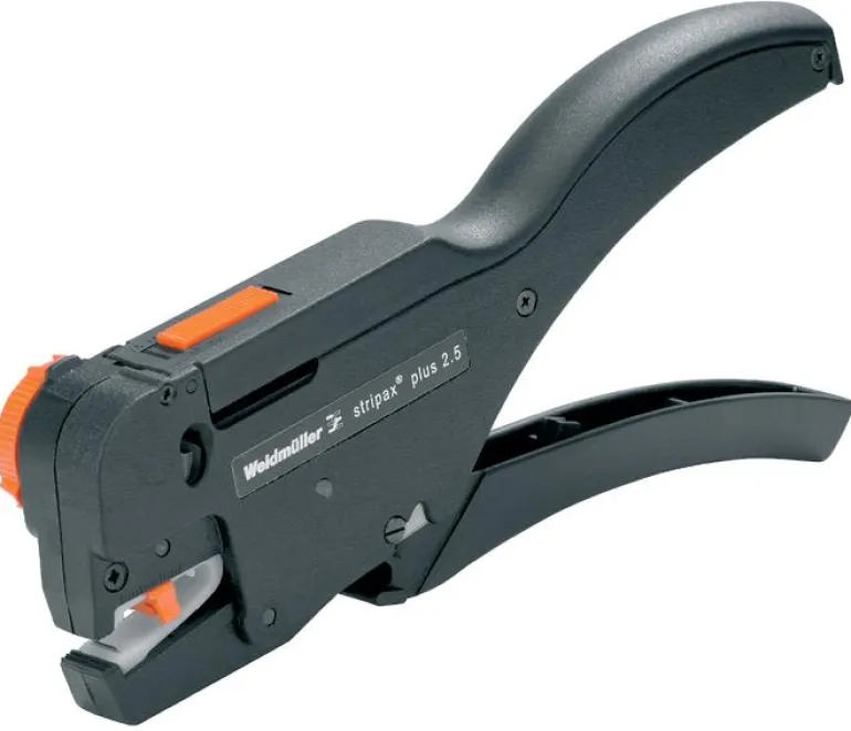 Kolmen työkalun toiminnot yhdessä: katkaisu-, kuorinta- ja puristustyökalut. Pääteholkit voidaan säilyttää työkalussa, mikä tarkoittaa helppoa holkkien käsittelyä. Stripax Plus -työkalu sopii kaikille johtimille 0,5–2,5 mm², joissa käytetään päätyholkkeja.
