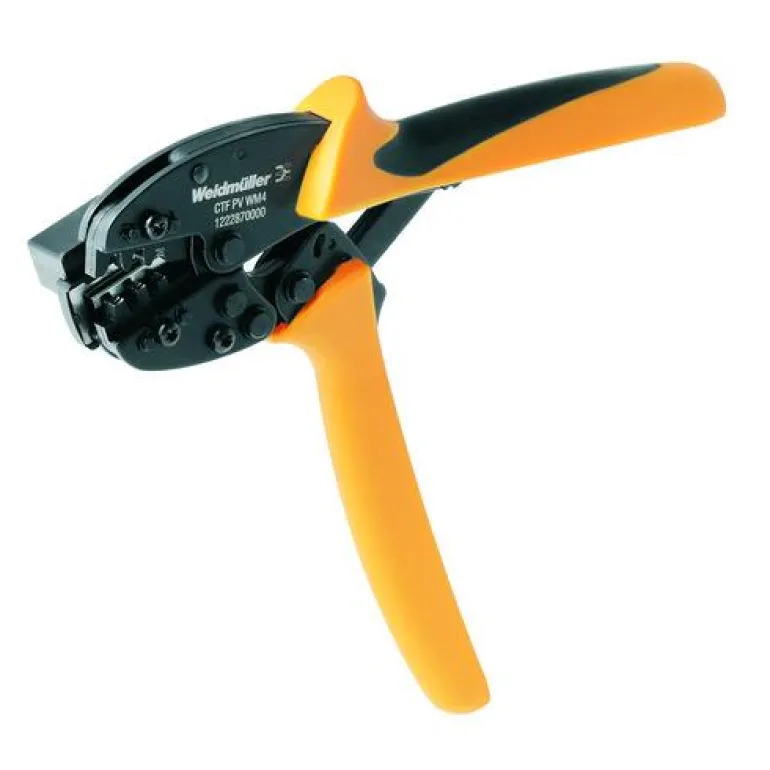 Puristuspihdit aurinkokennojen liittimille, 2,5 mm² ja 6 mm². Irrottamisen jälkeen voidaan puristaa toinen vastaavilla liittimillä tai kaapelikengillä varustettu pää.