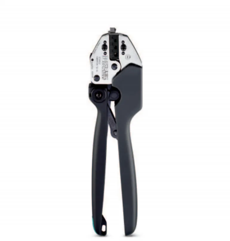 Puristuspihdit eristämättmille lattaliitinhylsyille, 2,8 / 4,8 / 6,3 mm. Kolme merkittyä osaa, pakkolukitus (avattavissa), vienti sivulta. Sisältää asemointiapuvälineet.