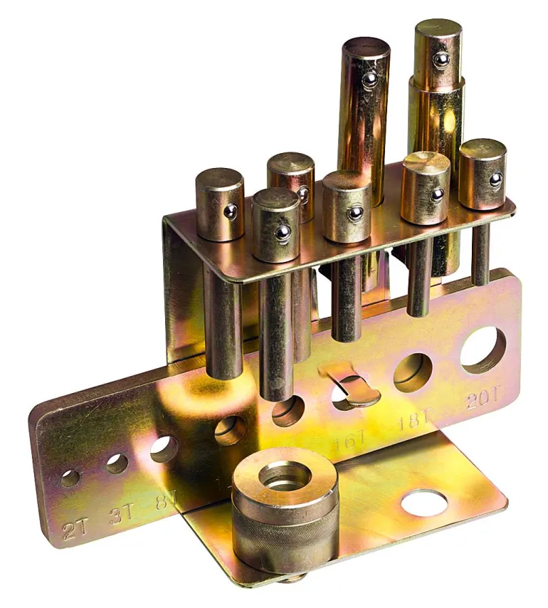 Puristustuurnasarja pidikkeellä (tappisarja hydraulipuristimelle), 8 osaa.