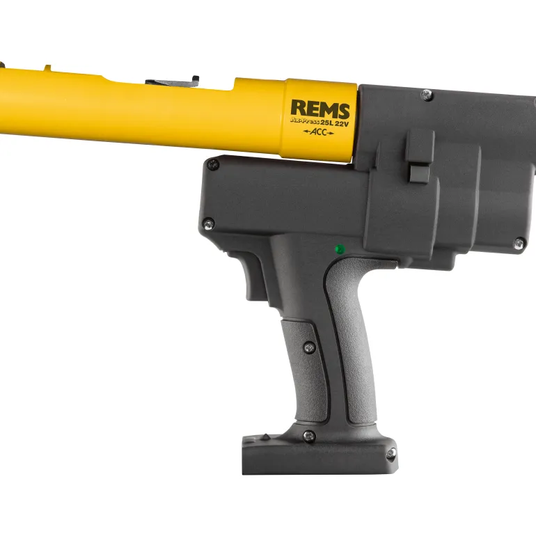 REMS Ax-Press 25 L on 22 V:n puristin, jossa on automaattinen palautus. Soveltuu paineholkkiliitosten valmistukseen Ø 12 – 40 mm. Puristimessa on 40 mm:n iskunpituus paineholkkien puristamiseen, puristusetäisyys ≤ 116 mm. REMS-puristinpäiden käyttämiseen.