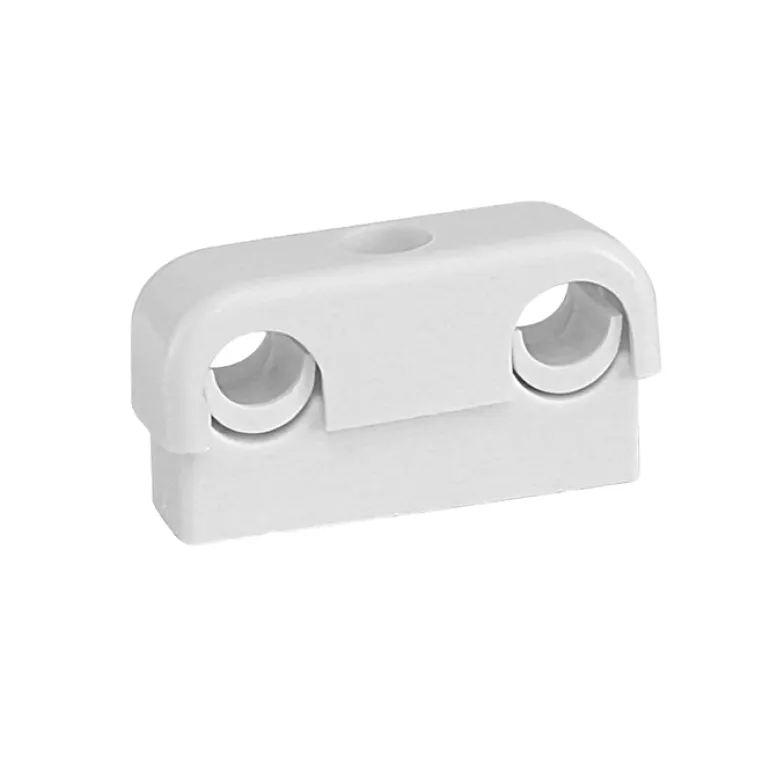 Valkoinen kaksiosainen putkikiinnike ulkohalkaisijaltaan 12–15 mm:n putkille. Mukana toimitetaan suojatulppa ruuvinreiän peittämiseen. Kiinnikkeen C/C-etäisyys on 40 mm ja C/V-etäisyys (keski/seinä) 20 mm.