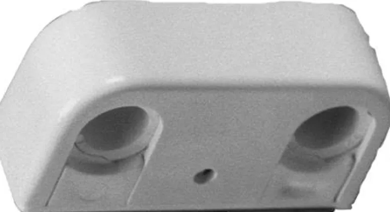 Kaksiosainen valkoisesta ABS-muovista valmistettu putkikannake, halkaisijaltaan 15–18 mm:n putkille .