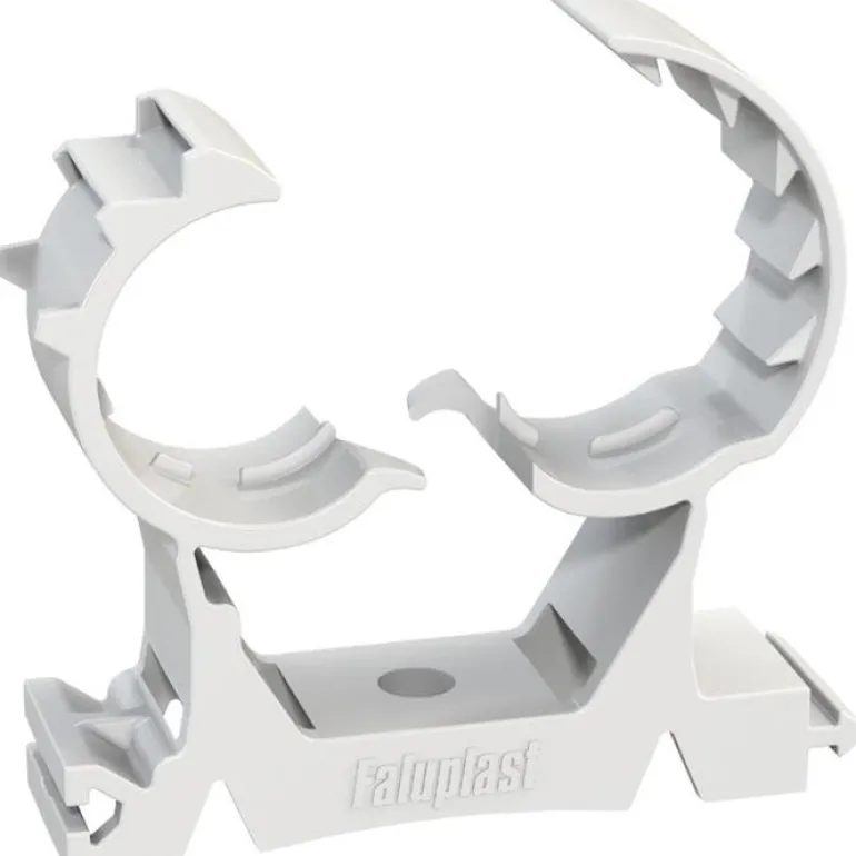 Faluplast Pex Fix 19460 on valkoinen putkikiinnike 25/28/34 mm:n (Dy) PEX-putkien kiinnittämiseen. Voidaan ruuvata tai kiinnittää nippusiteellä. Kiinnikkeen mitat ovat 60 x 18 x 62 mm (P x L x K).