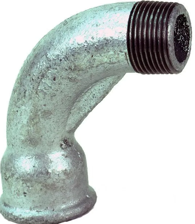 Adusoitu taivutettu putki G25-kierteellä, 90 asteen kulma, yksi holkki ja sinkitty.