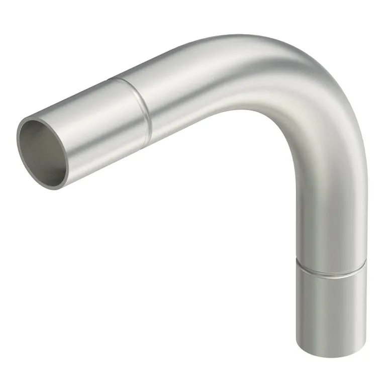 Ruostumattomasta V4A-teräksestä valmistettu putkikaarre, ilman kierrepäätä, standardin EN 61386-1 mukainen, kaapelien ja johtojen mekaaniseen suojaamiseen. Purseeton sisäseinä.
