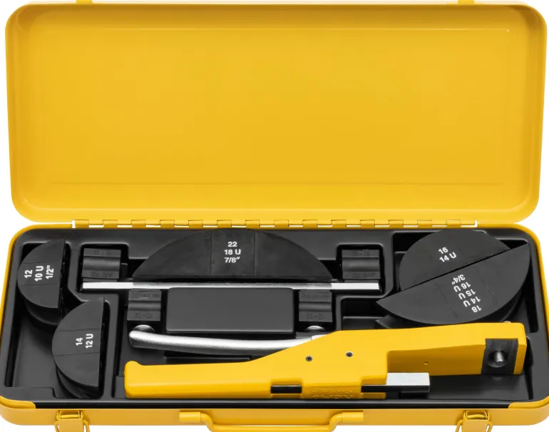 REMS Swing Set on yhden käden putkentaivutin Ø12 – 32 mm, ؽ – ⅞”. Käytännöllinen yhden käden työkalu putkien tarkkaan taivutukseen 90°:seen asti. Ihanteellinen suoraan työkohteessa työskentelyyn. Asennustöihin ja teollisuuteen. Rakentamiseen ja työpajoihin. Voidaan käyttää monille putkityypeille. Nopea työskentely – kätevä monitoimivipu mahdollistaa nopean syötön ja nopean paluun. Luotettava hammaspyöräsyöttö. Ihanteellinen myös eristettyihin muoviputkiin.