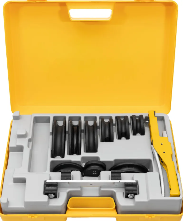 REMS Swing Set Allround 22 on yhden käden putkentaivutin Ø10 – 22 mm, ⅜ – ⅞”. Käytännöllinen yhden käden työkalu putkien tarkkaan taivutukseen 90°:seen asti.