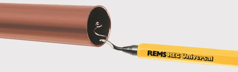 REMS REG Universal on yleiskäyttöinen putkijyrsin putkien ja reunojen purseenpoistoon, eri materiaaleille. Kupari-, teräs-, messinki-, alumiini- ja muoviputkille.