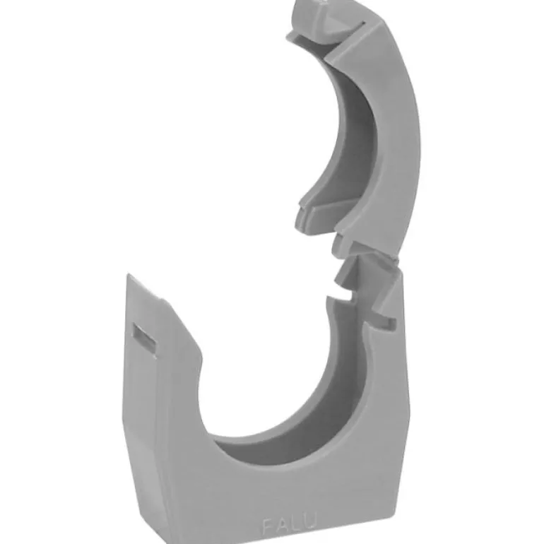Faluplast 18181 on harmaa yksiosainen putkikiinnike, jossa on lukituskansi. Putkille, joiden ulkohalkaisija on 32 mm. Mitat 45 x 50 x 20 mm, valmistettu PP-muovista.