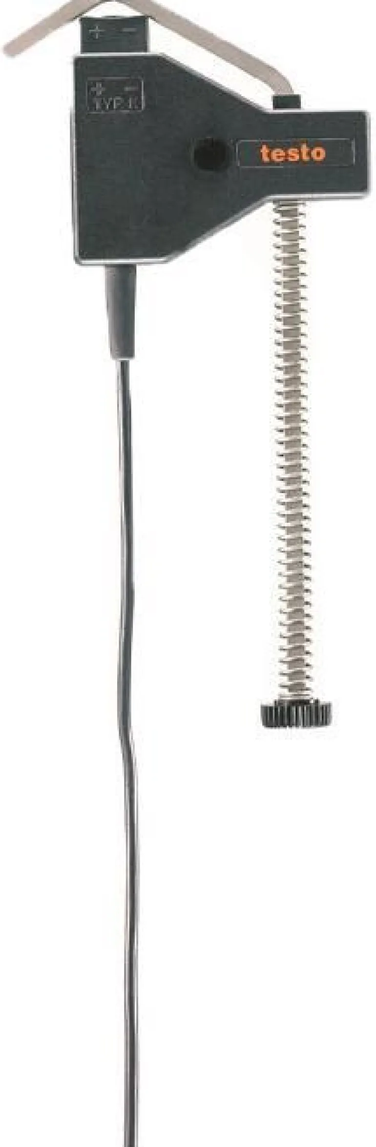 Putken lämpötila-anturi vaihdettavalla mittapäällä halkaisijaltaan 5–65 mm:n putkille. Mittausalue –60…130 °C, kestää lyhytaikaisissa mittauksissa jopa +280 °C. Vasteaika 5 sekuntia.