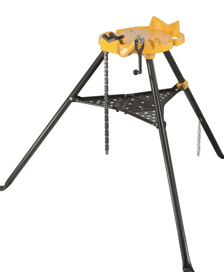 Sopii erityisesti putkiasennuksiin, esim. urien tekoon, leikkaamiseen, kierteittämiseen, hitsaukseen, juottamiseen. Säädettävä puristuspää katon ja lattian välisen työpisteen kiinnittämiseen takaa erityisen hyvän vakauden. Luotettava 3-jalkainen jalusta mahdollistaa turvallisen asennuksen, taitettava: helppo asentaa ja kuljettaa. Käytännöllinen asennuslevy työkaluille ja työmateriaaleille.