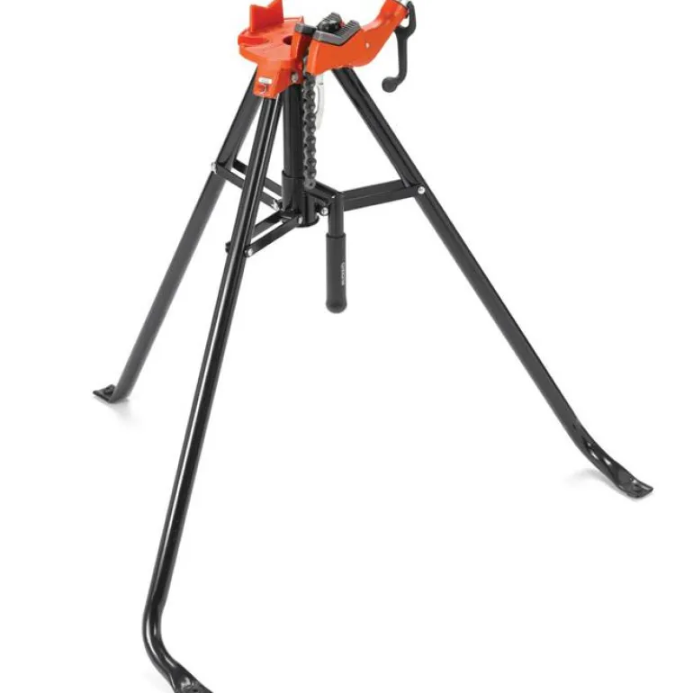 Ridgid 425 Tristand on puristimella varustettu tukijalka 6–60 mm:n putkille (1/8–2 1/2″). Itselukittuva pikakiinnitys, kantokahva, kuljetusta ja asennusta helpottavat kokoontaittuvat jalat, ripustin työkaluille sekä etujalan päälle taittuva alusta, jossa on vapaata tilaa työkaluille.
