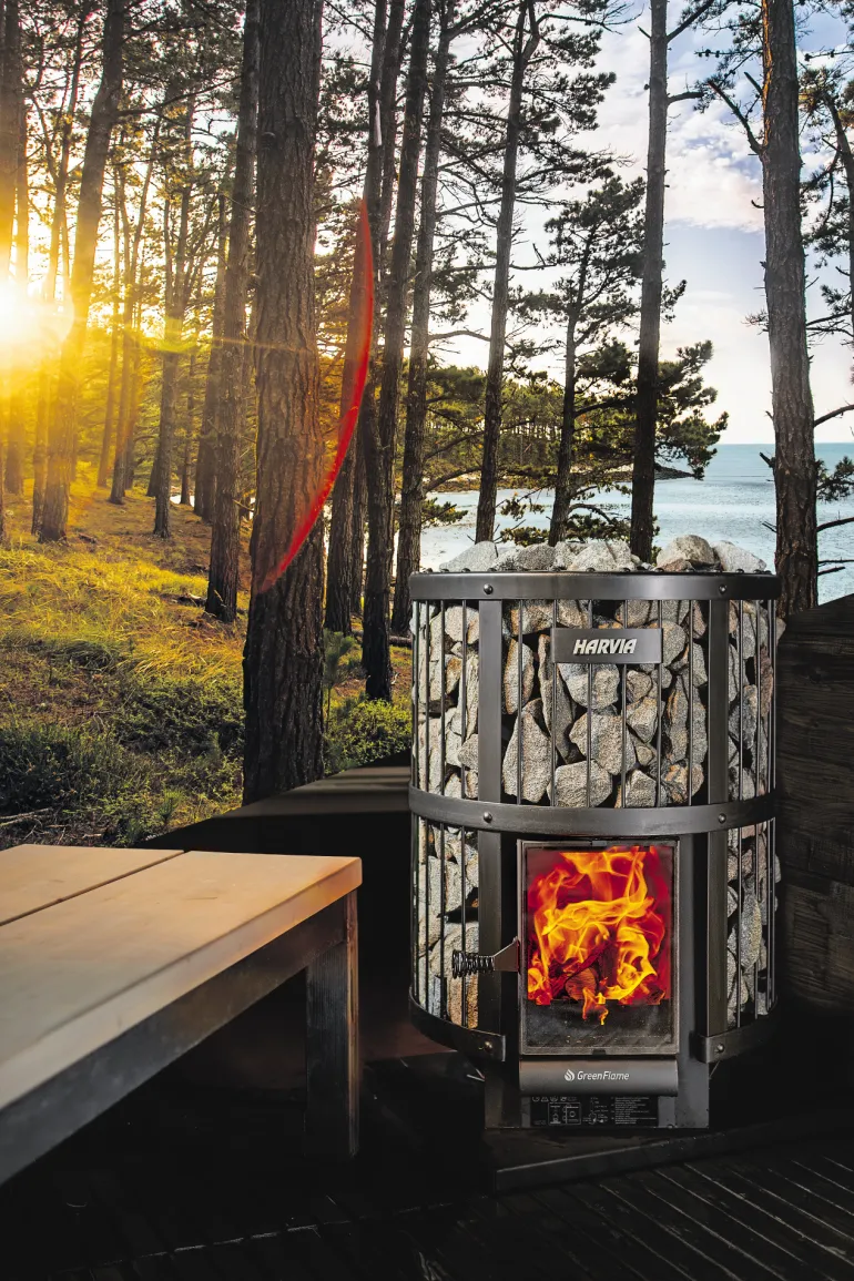 Harvia Legend 240 GreenFlame -puukiukaan suuren lasiluukun takana loimuava tuli palaa puhtaasti – sinä saat vain nauttia maagisen rauhoittavasta tunnelmasta. Keskikokoiseen saunaan sopiva kiuas on vähäpäästöinen, kestävä ja helppokäyttöinen. Mahtava kivimäärä takaa savusaunamaisen pehmeät löylyt.