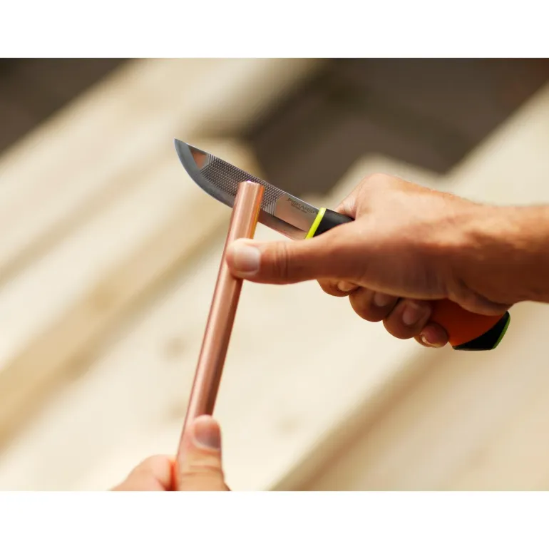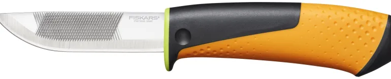 Veitsi, jossa on korkealaatuinen terä, ergonominen 3-komponenttinen kahva ja integroitu viila terän puolella. Sisäänrakennettu hionta kotelossa.