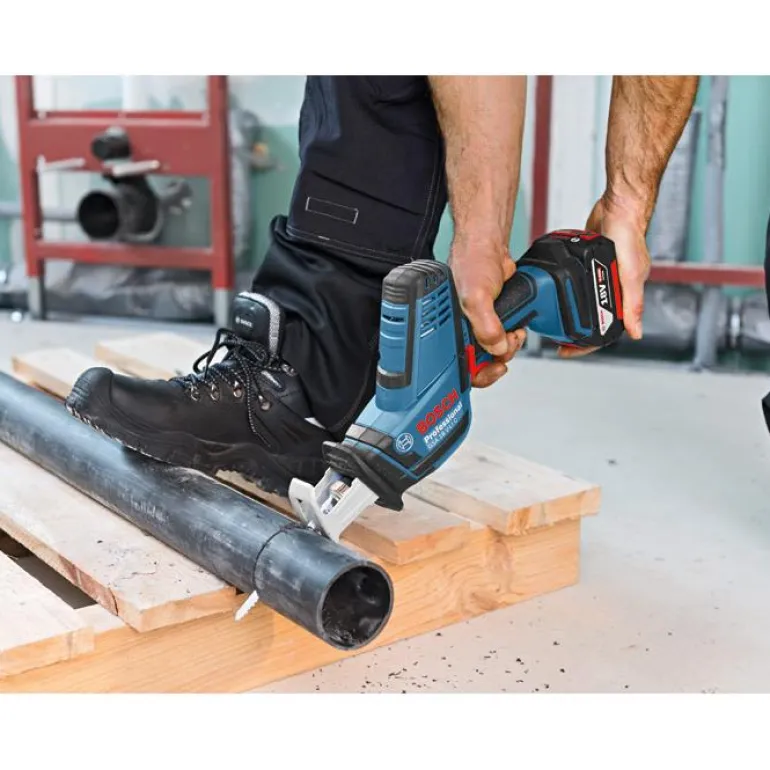 Akkupuukkosaha 18 V. Kompakti koko on täydellinen työskentelyyn ahtaissa paikoissa ja pään korkeuden yläpuolella. Terän avaimeton pikakiinnitys. Iskun pituus 21 mm, 3 500 kierr./min.