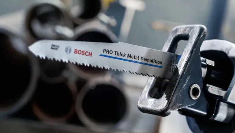 Bosch Professional PRO Thick Metal Demolition S1130CF puukkosahanterä, jonka kovat terät on liitetty joustavaan runkoon hitsaamalla bimetallia. Edistyksellinen 2 x 2 -hammasgeometria nopeaan leikkuuseen. Vankkatekoinen, paksu rakenne ja laadukasta, suoraa leikkuujälkeä tuottava terä. Pitkä käyttöikä raskaiden metallirakenteiden purkamisessa. Soveltuu metalliputkille ja -profiile sekä ei-rautametalleille.