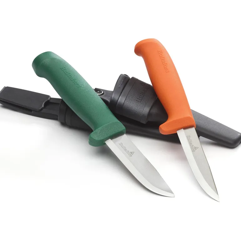 Puukot tuplatupessa. Iso yleispuukko GK ja yleispuukko HVK samassa paketissa. Tukeva ja kestävä Gk-yleispuukko soveltuu järeisiin töihin. HVK-yleispuukko on suunniteltu kaikenlaisiin kirvesmiehen töihin.