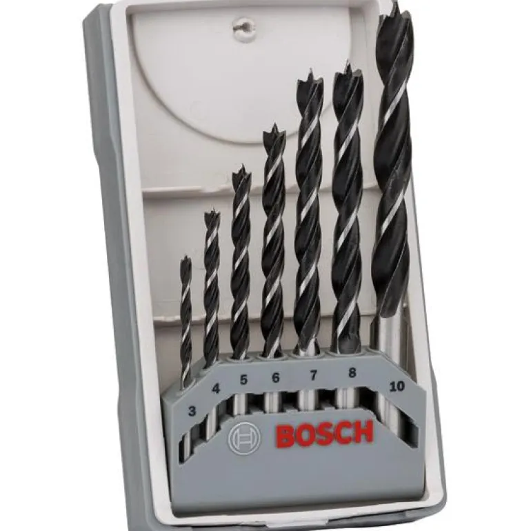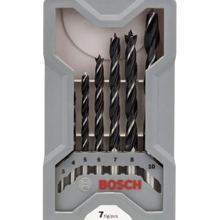 7-osainen puuporanteräsarja, Ø 3, 4, 5, 6, 7, 8, ja 10 mm, kätevässä pakkauksessa.