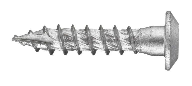 Ulkokierteellinen, patentoitu Wafer Jetting Screw -puuruuvi tasaisella kannalla. Ruuvin ainutlaatuiset kiinnittymisominaisuudet on saavutettu leikkaavan kärjen ja kierteiden välisen viiston, pituussuuntaisen terän ansiosta.