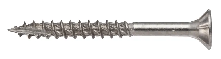 Puuruuvi, jossa on madallettu kanta. TX-kanta. Ruuvin ainutlaatuiset kiinnittymisominaisuudet on saavutettu leikkaavan kärjen ja kierteiden välisen viiston, pituussuuntaisen terän ansiosta.