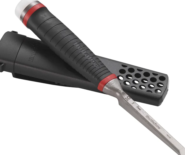 Puutaltta tehtäviin, jotka vaativat voimaa ja tarkkuutta. Yhdestä kappaleesta taotussa taltassa on läpikulkeva I-profiili, joka takaa äärimmäisen murtolujuuden ja maksimoi voimansiirron työkappaleeseen. Iskunkestävä nailoniskupää, joka voidaan vaihtaa, kun se on kulunut. 25° kulma takaa optimaalisen tasapainon terävyyden ja kestävyyden välillä. Koko terä kahva mukaan lukien voidaan asettaa alustaa vasten, jolloin työstäminen onnistuu täysin yhdensuuntaisesti pintaa pitkin.
