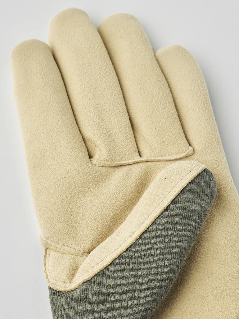 Työkäsine, joka on erityisesti suunniteltu puutarhatöitä varten. Käsineessä on pehmeä ja viileä tuntuma sekä hyvä sormituntuma. Valmistettu kromittomasta vuohennahasta, hampputrikoosta ja luomupuuvillasta.
