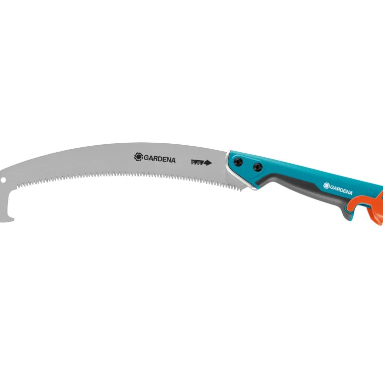 Tarkkuushammastus; impulssikarkaistut hampaat kärjet ja kolminkertainen hionta takaavat sujuvan ja turvallisen sahaamisen vetosuunnassa. Erikoispinnoite suojaa kaarevaa CS 300 P -puutarhasahaa ihanteellisesti ruostumiselta. Varren päässä oleva pysäytin estää luiskahtelun myös vedettäessä. Oksia on helppo poistaa käyttämällä koukkua katkaistujen oksien irrottamiseen kaarevan sahanterän kärjestä. Sahassa on ripustuslenkki, ja sahanterän voi suojata teräsuojalla. Tämä varmistaa aina CS-puutarhasahan turvallisen säilytyksen.